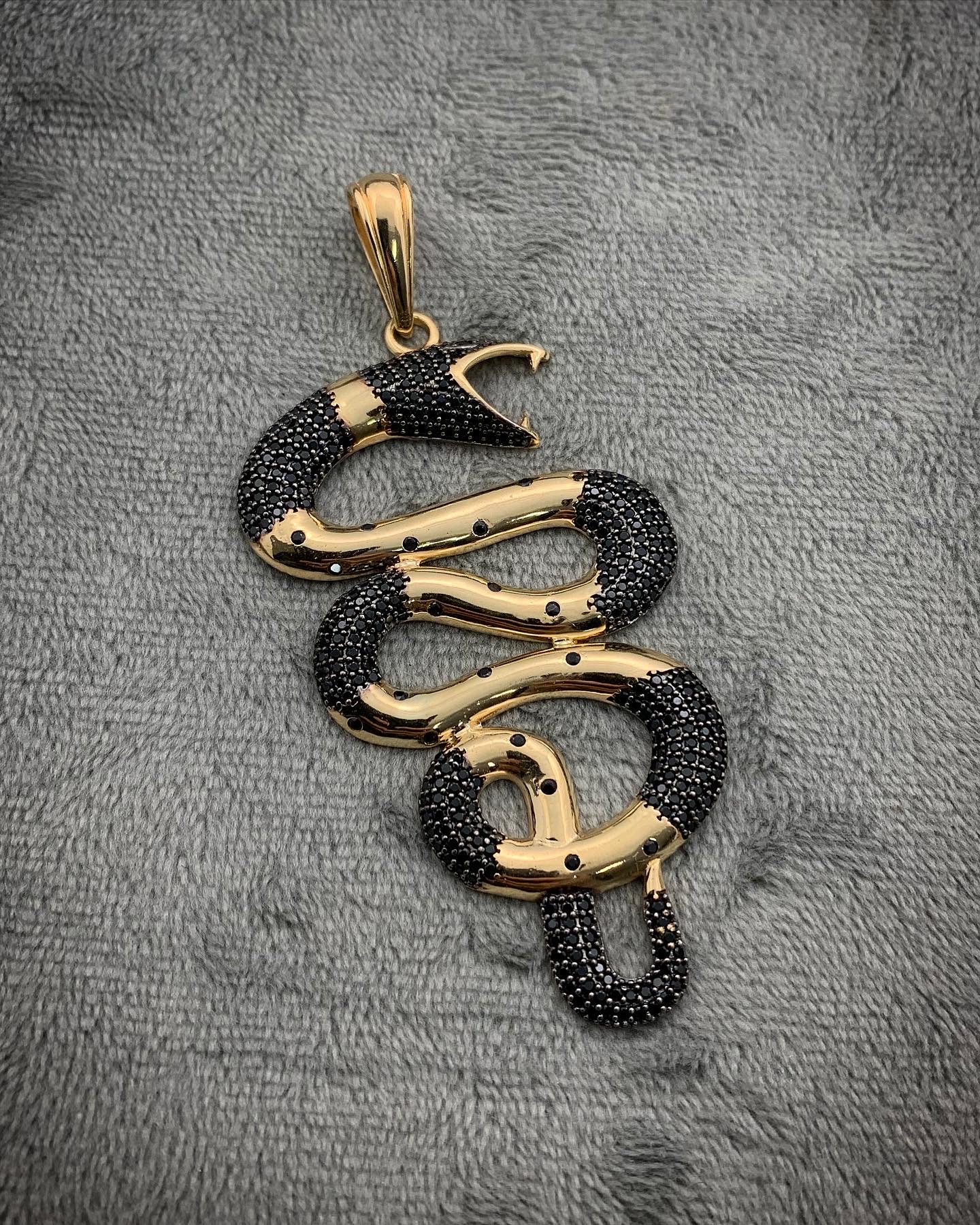 Dije De Serpiente Con Swarovski Negro Oro Amarillo 18k 12.1gr 7.3cm