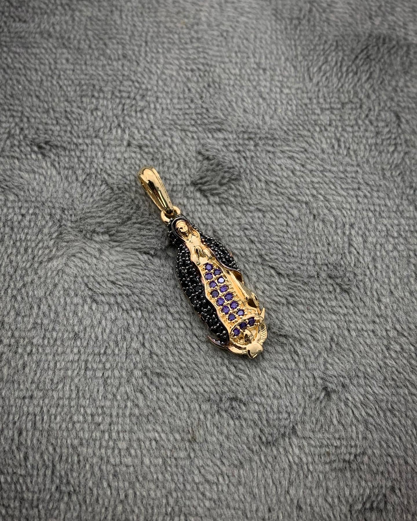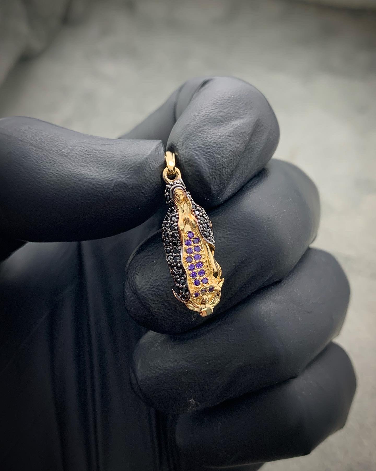 Inicio / Dije / Dijes Casting / Dije De Virgen De Guadalupe Con Swarovski Morado Oro Amarillo 18k 2.4gr 3cm