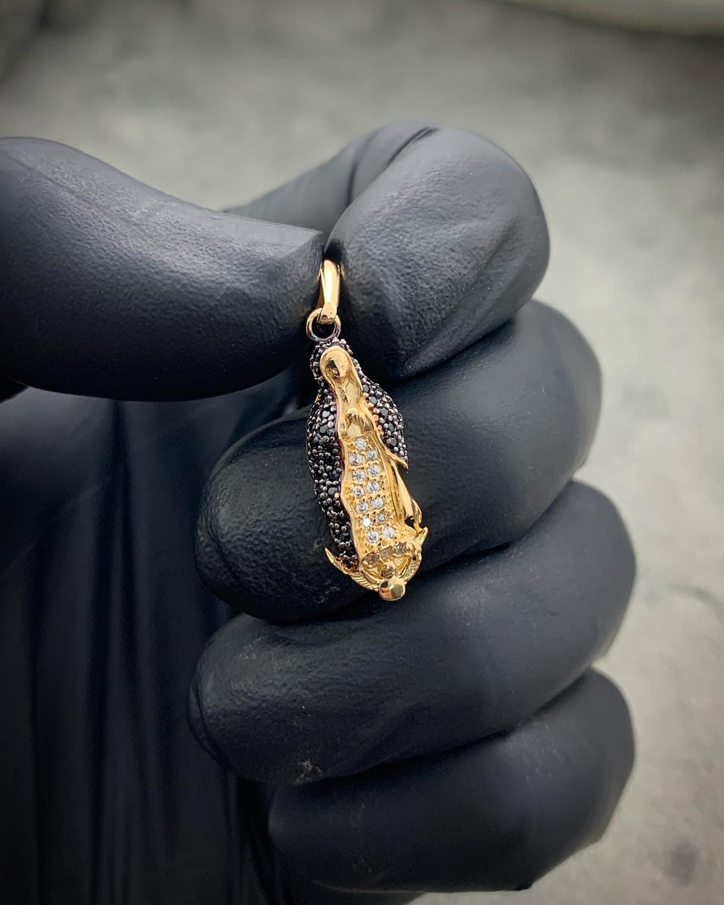 Dije De Virgen De Guadalupe Con Swarovski Negro Y Blanco