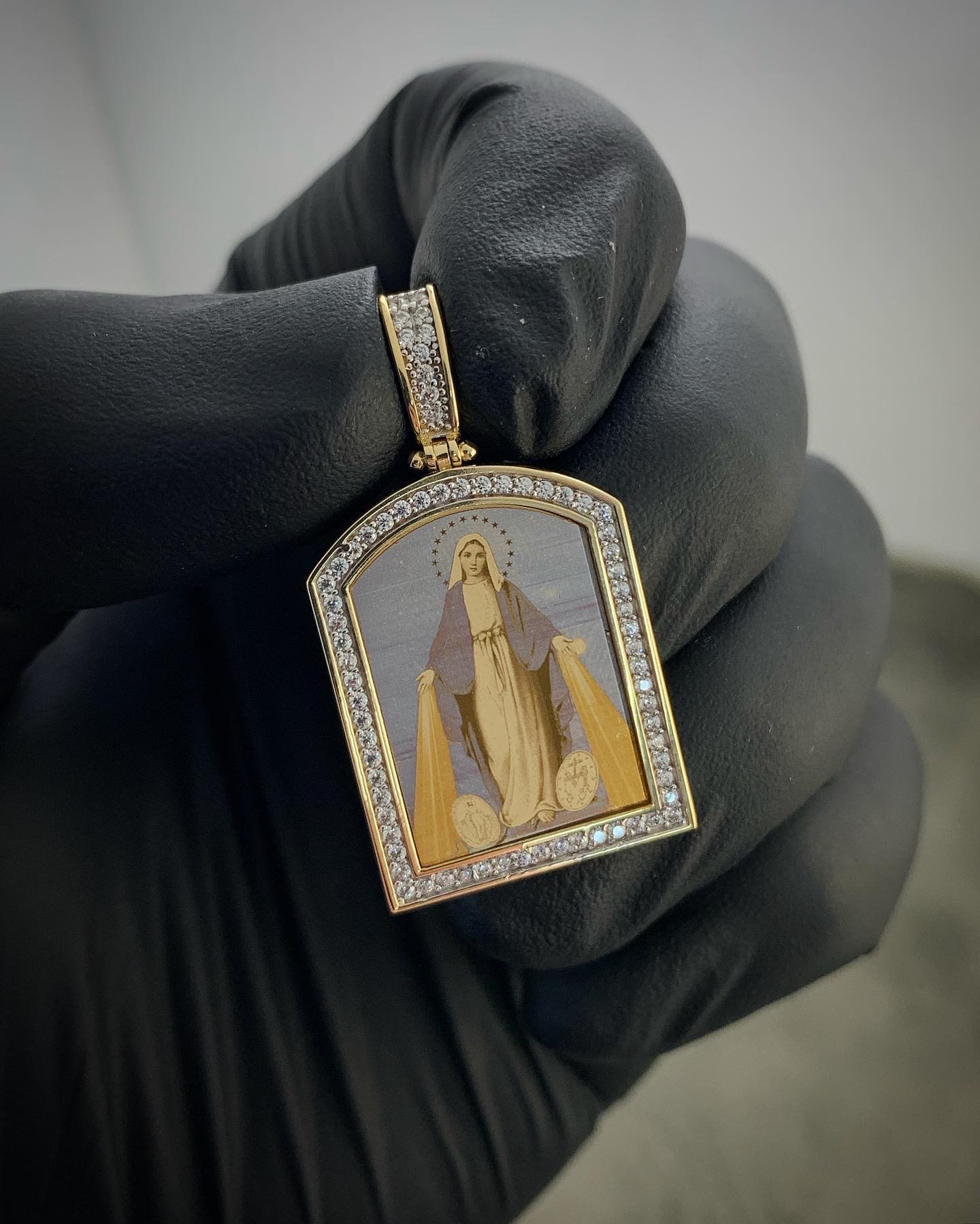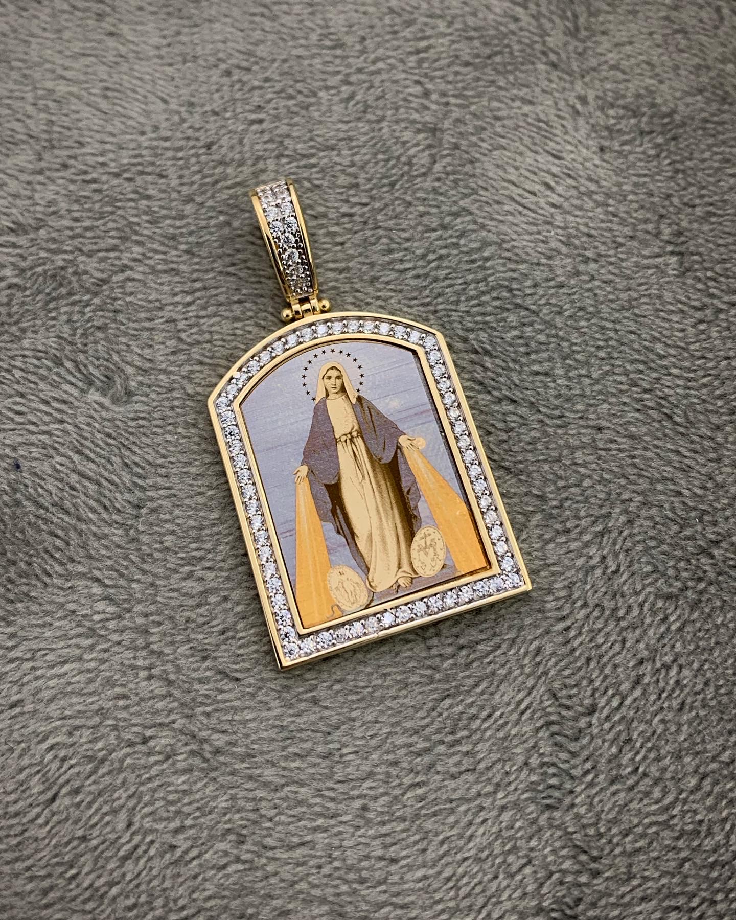 Dije En Placa De La Virgen Milagrosa Con Swarovski Blanco