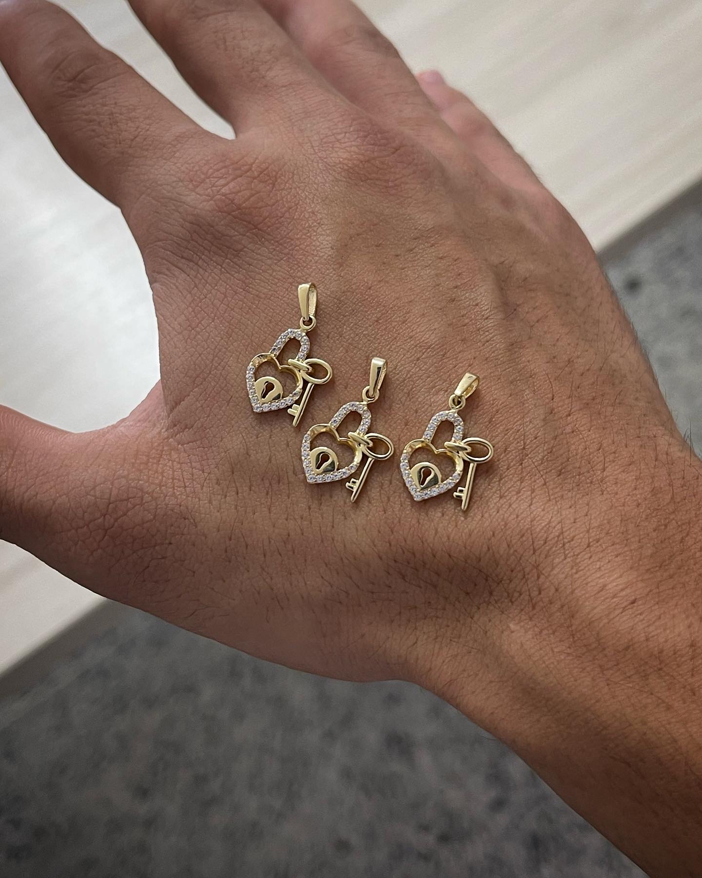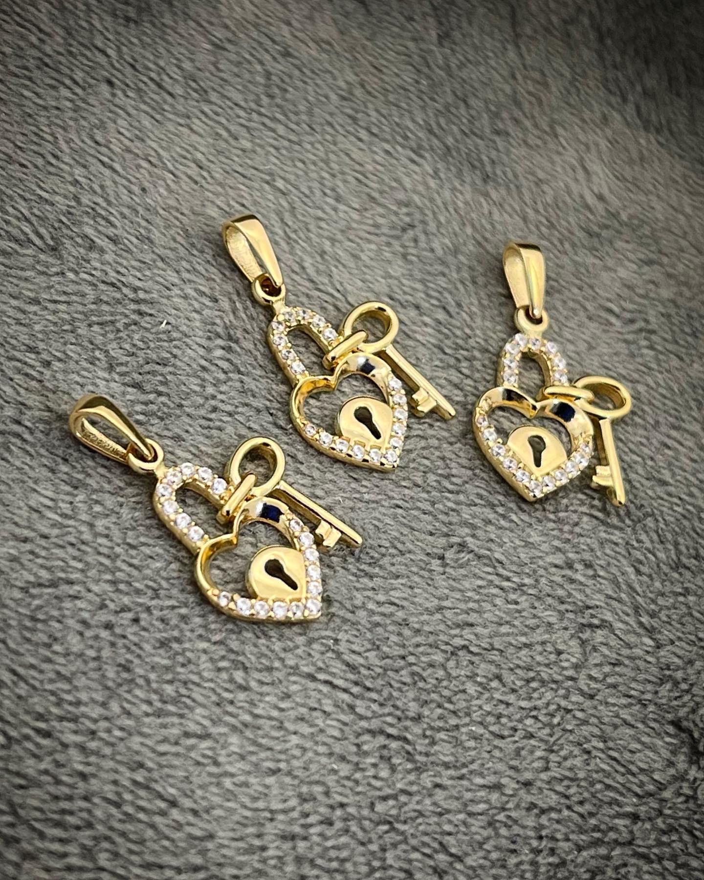Inicio / Dije / Dijes Casting / Dije Llave Con Corazon Con Swarovski Oro Amarillo 18k Italy 1.15gr 2.1cm