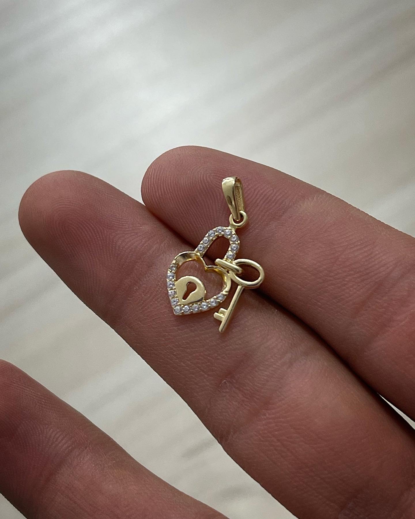 Dije Llave Con Corazon Con Swarovski Oro Amarillo 18k Italy 1.15gr 2.1cm