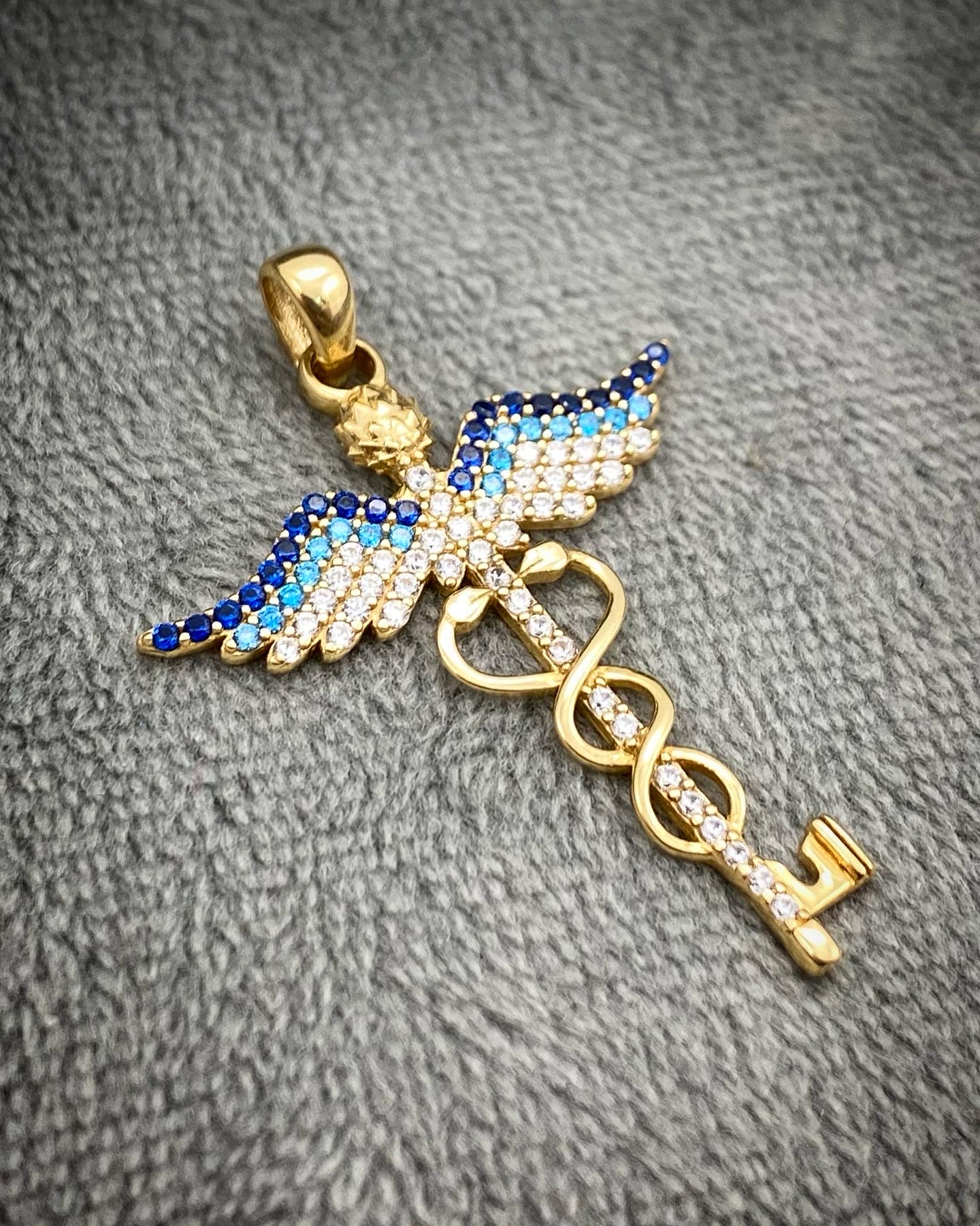 Dije Simbolo De Medicina Con Swarovski Blanco Y Azul