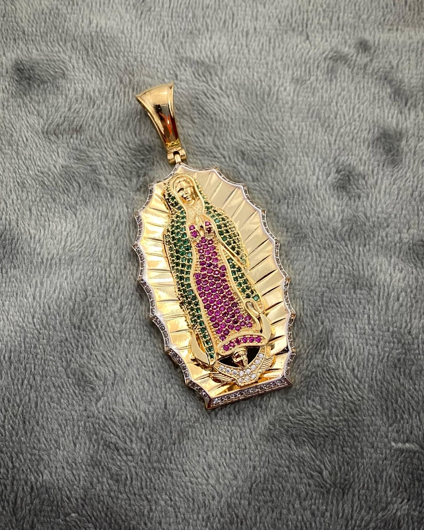 Dije Virgen De Guadalupe Con Swarovski Blancos, Fucsia Y Verdes