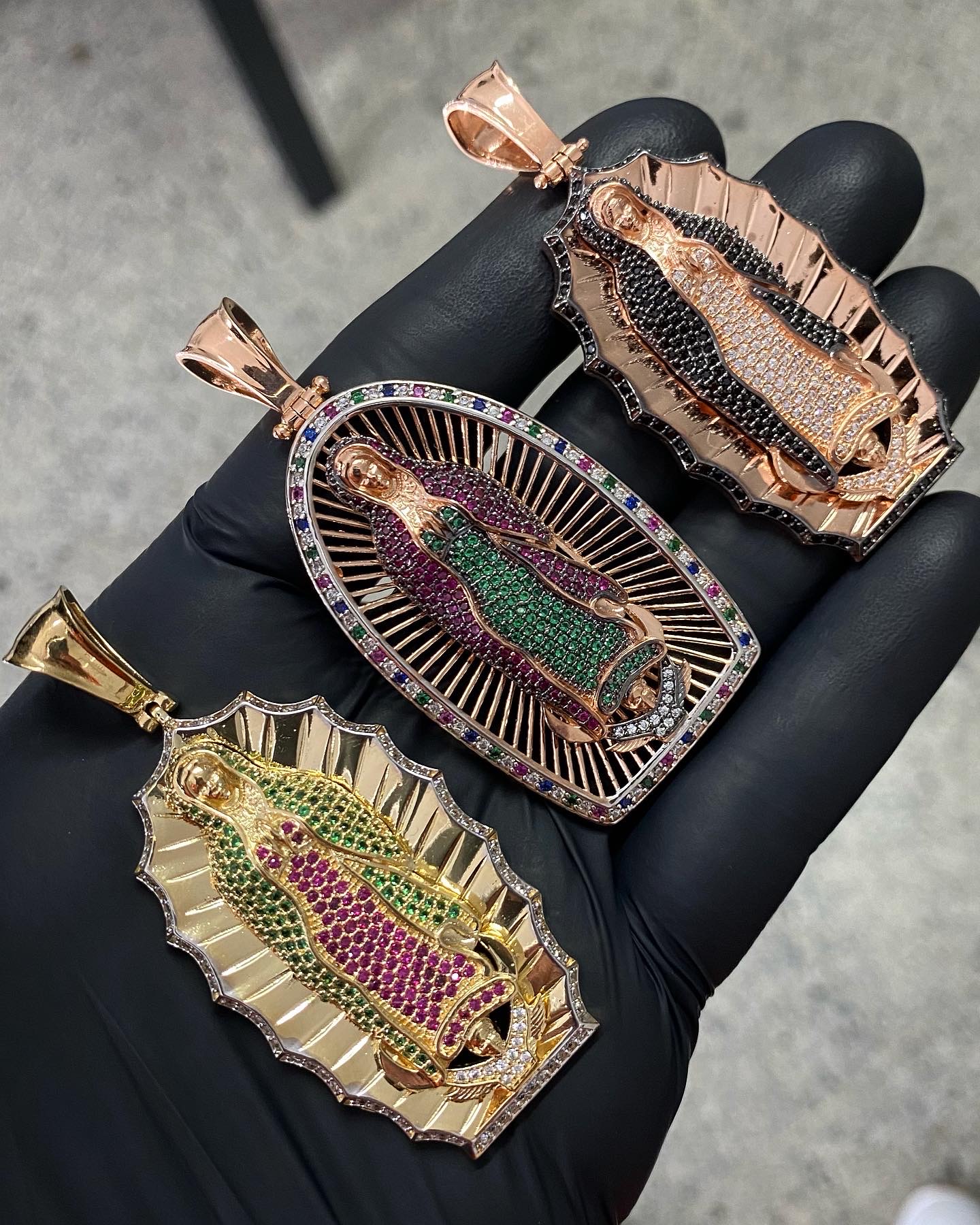 Dije Virgen De Guadalupe Con Swarovski Oro Amarillo 18K 16.95 6.5 cm