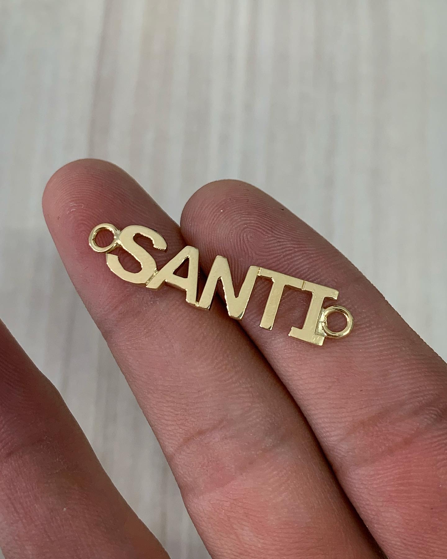 Hermoso Herraje con Letras SANTI en Oro Amarillo 18K 2.6gr