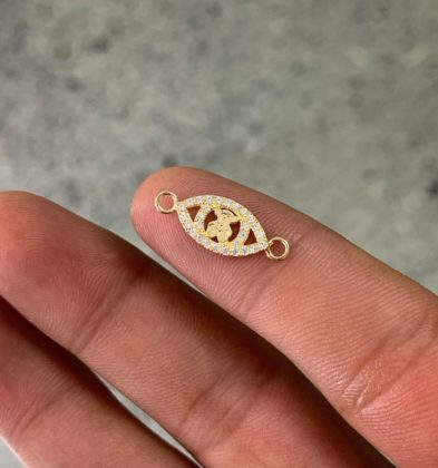 Herraje de Ojo con Oso Th con Swarovski Blancos en Oro Amarillo 18K 0.75gr