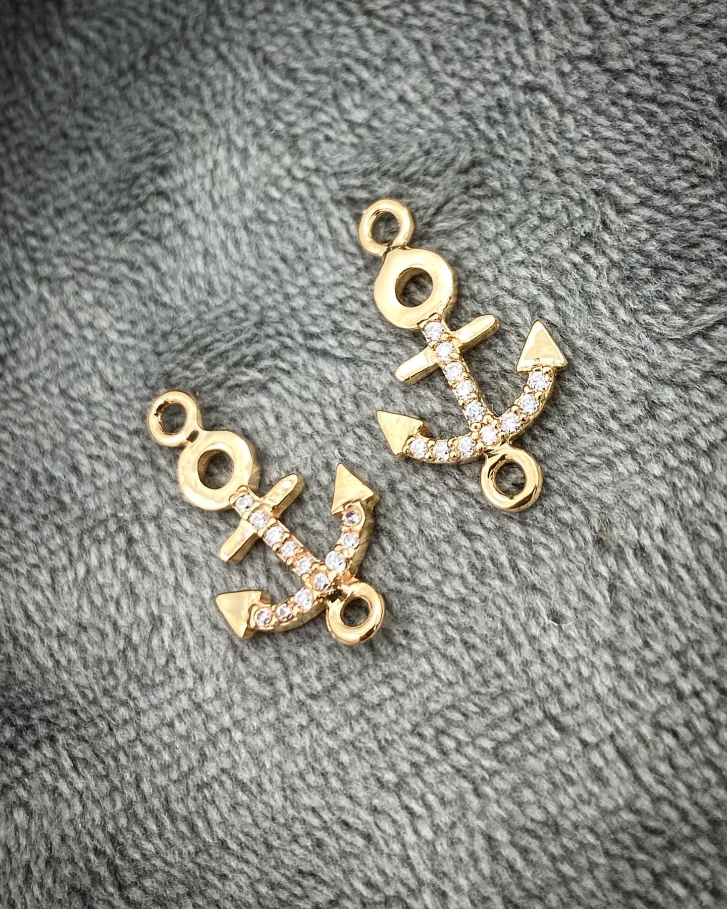 Inicio / Herraje / Herraje De Ancla Con Swarovski Blanco Oro Amarillo 18k 0.7gr 1.8cm