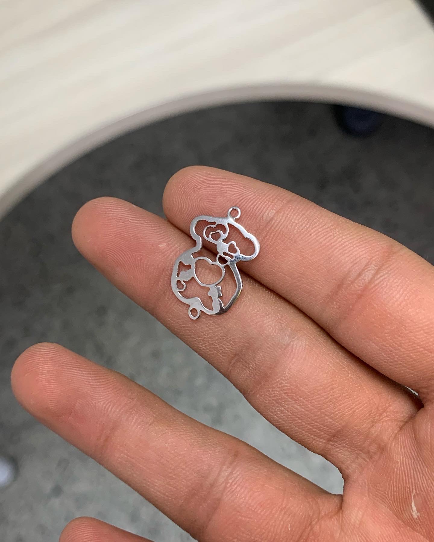Hermoso Herraje de Oso en Oro blanco textura dentro del dije