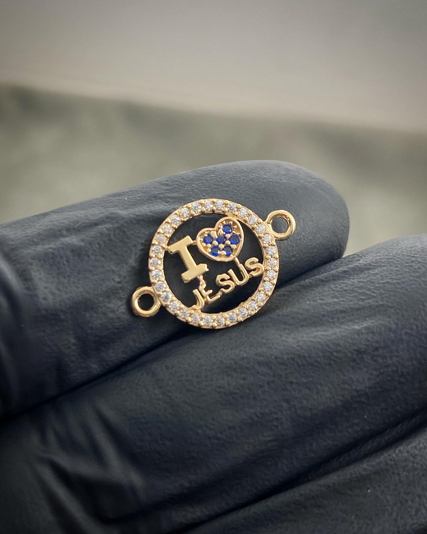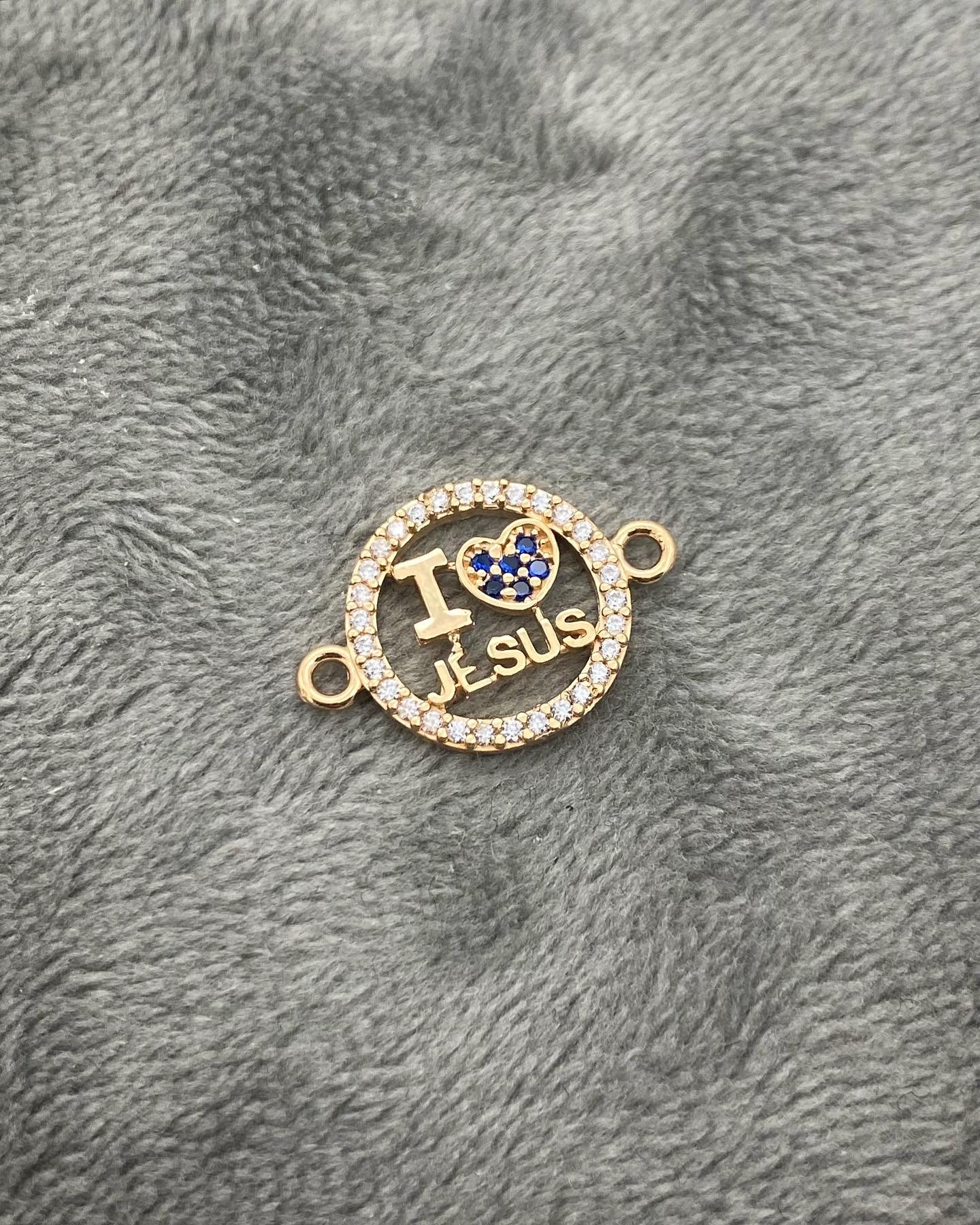Herraje “I Love jesus” con swarovskis multicolor Azul en Oro Amarillo 18K 1.25gr