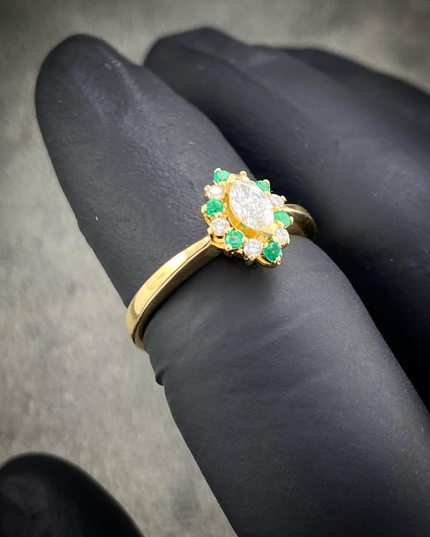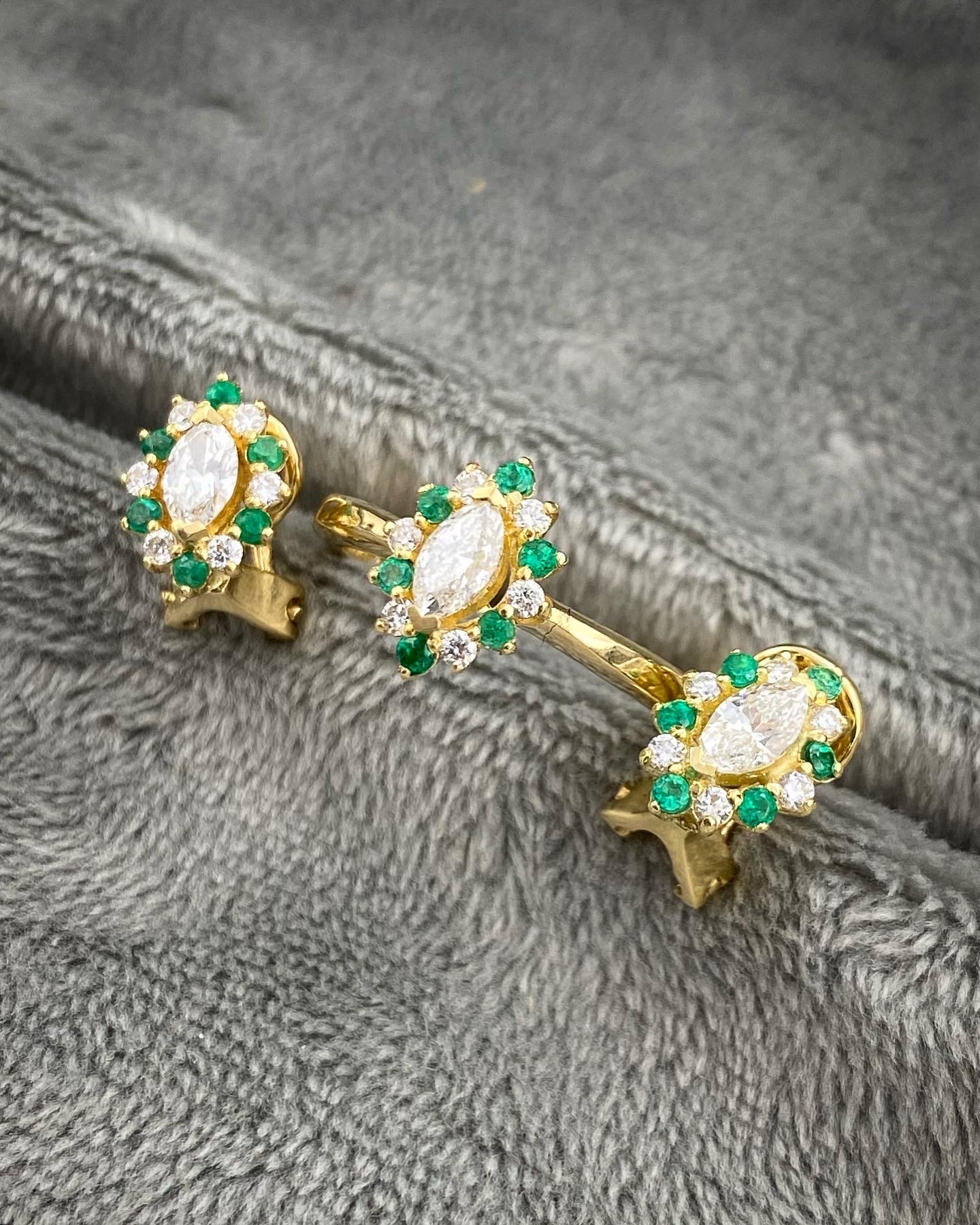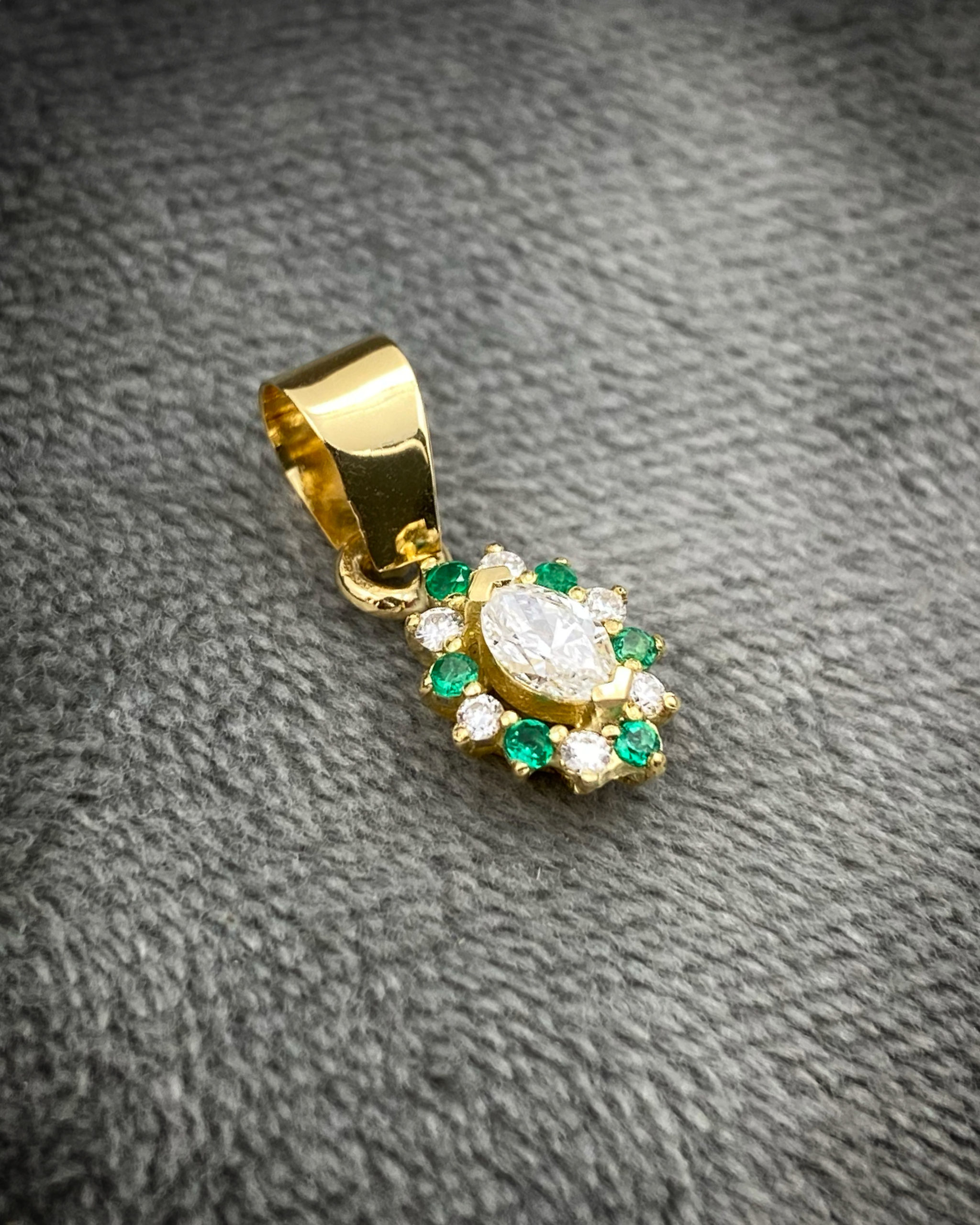 Inicio / Joyeria con Piedras Preciosas / Topos piedras naturales / Juego De Solitario Con Aretes Y Dije Con Esmeraldas Y Diamantes Oro Amarillo 18K 9.1 gr Talla #6 1/4