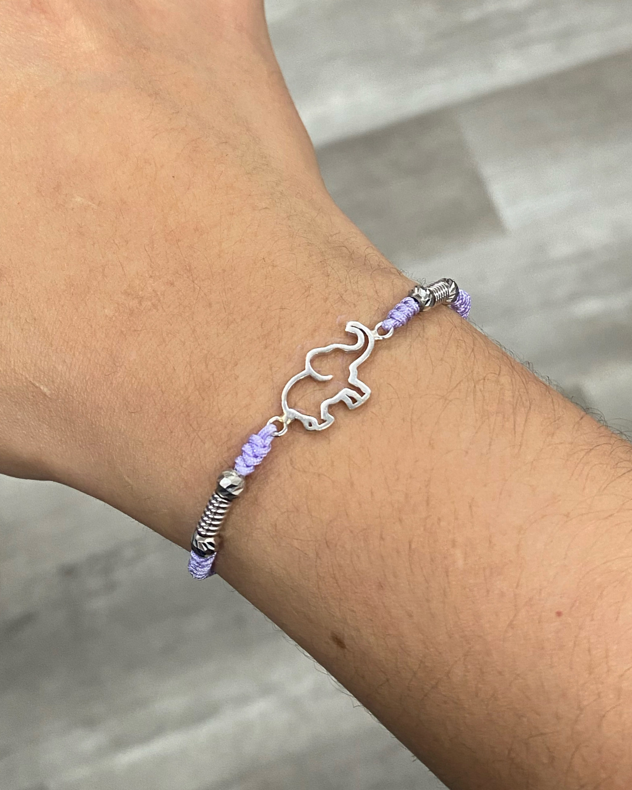 Pulsera En Hilo Morado Con Herraje De Elefante
