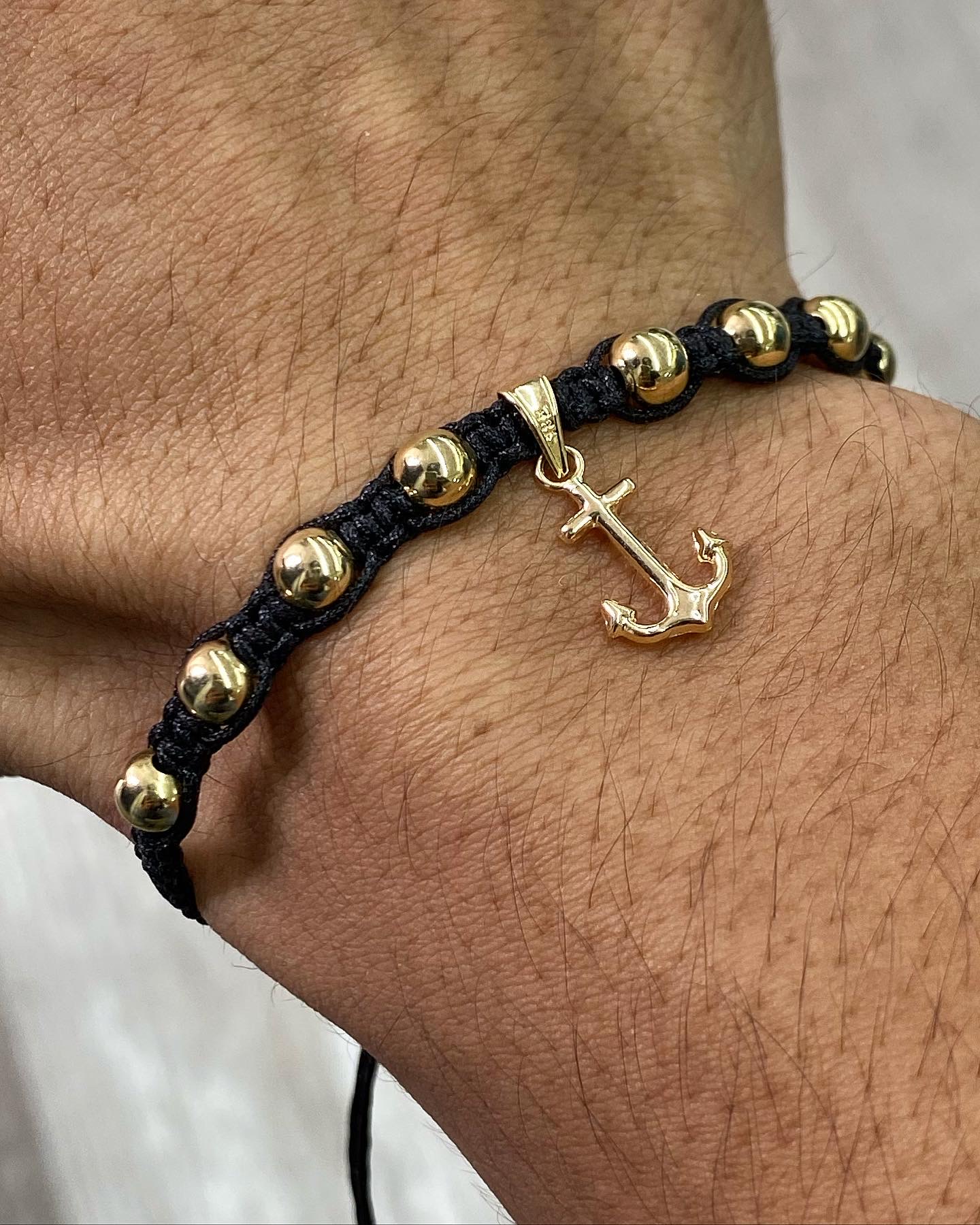 Pulsera En Hilo Negro Con Dije De Ancla Oro Amarillo 18k