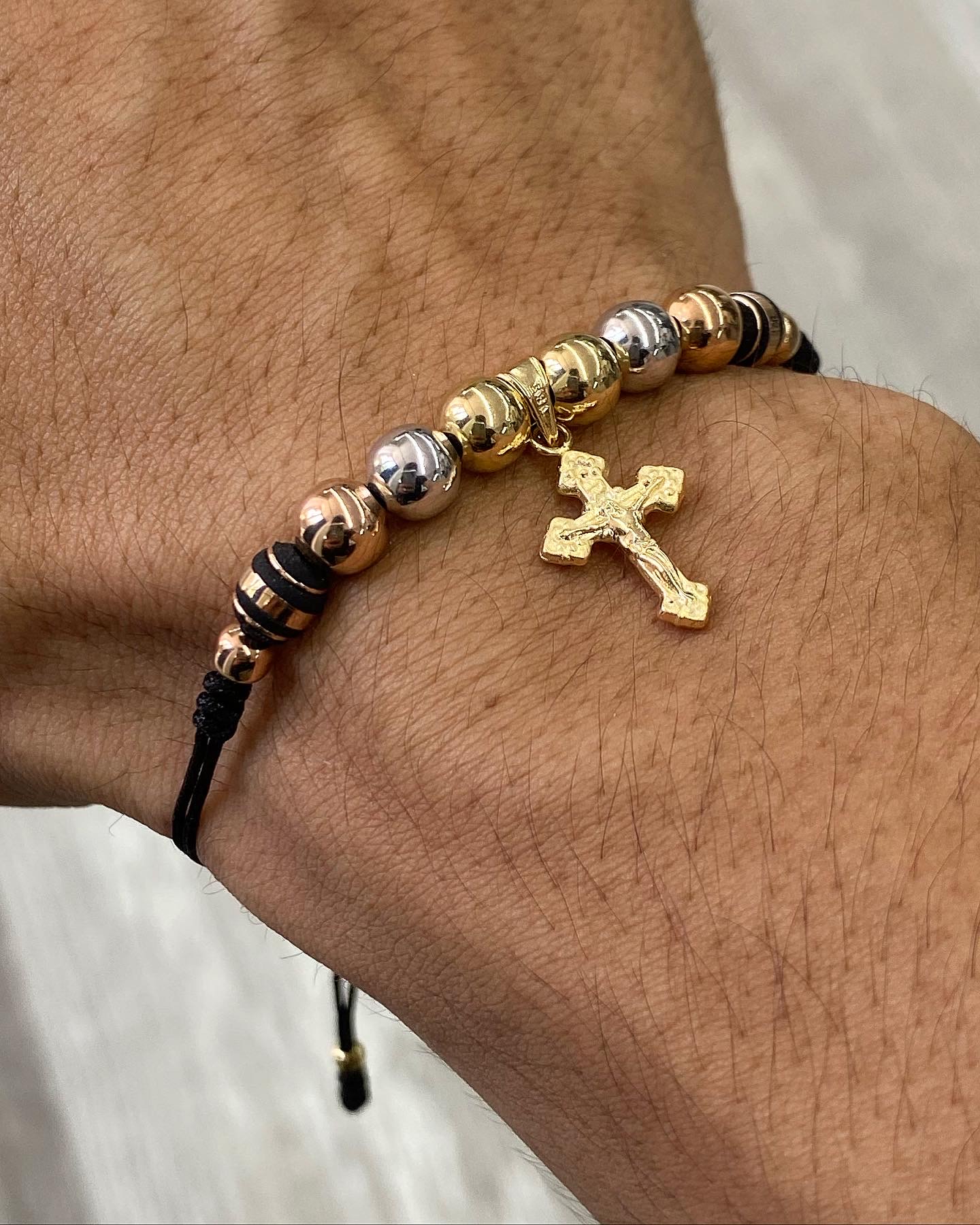 Pulsera En Hilo Negro Con Dije De Cruz Jesus