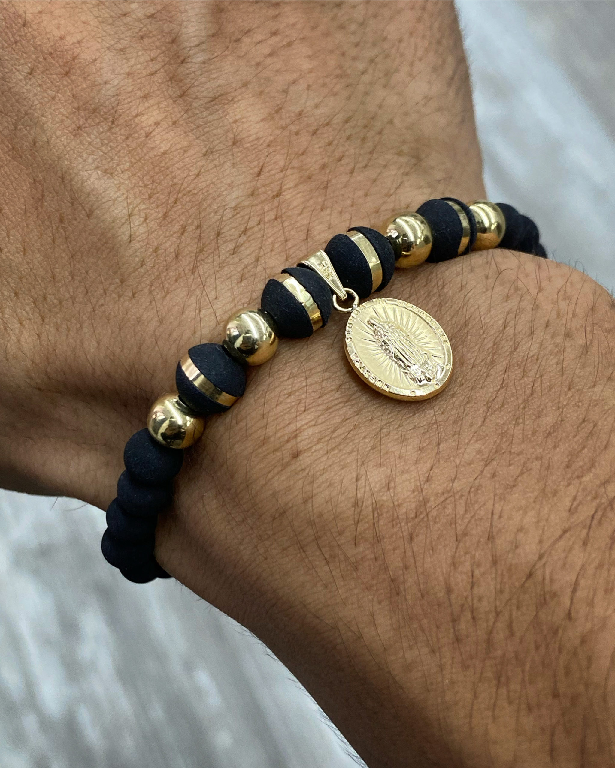 Pulsera En Hilo Negro Con Dije De La Virgen De Guadalupe