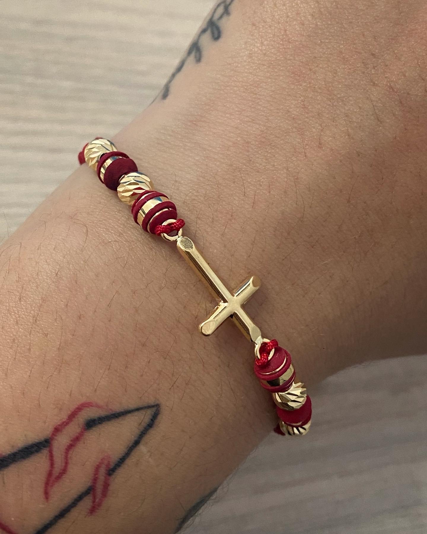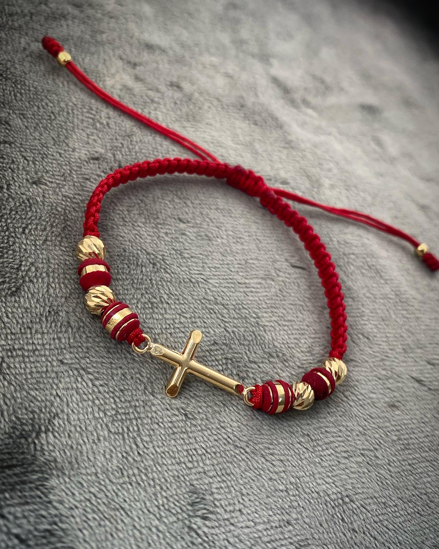Pulsera En Hilo Rojo Con Herraje De Cruz Oro Amarillo 18k