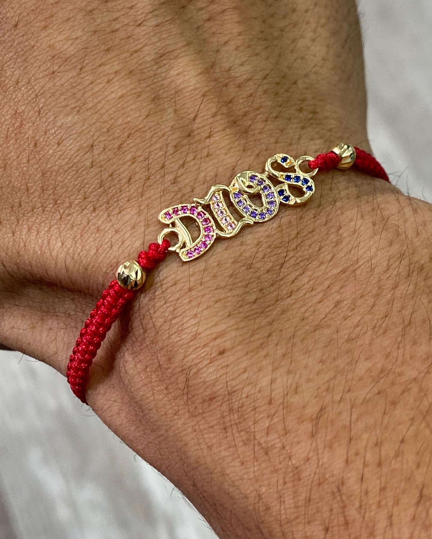 Pulsera En Hilo Con Herraje De Dios Con Swarovski Multicolor