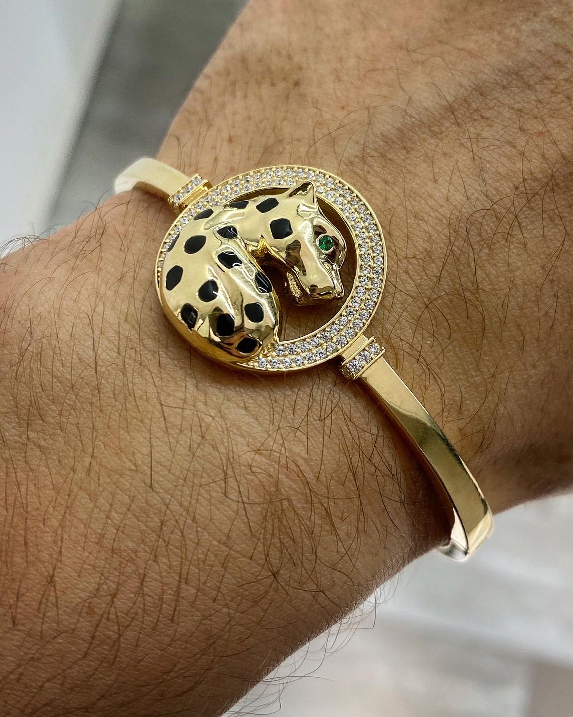 Pulso Aro De Pantera Con Swarovski ( Blanco,Verde ) Italy