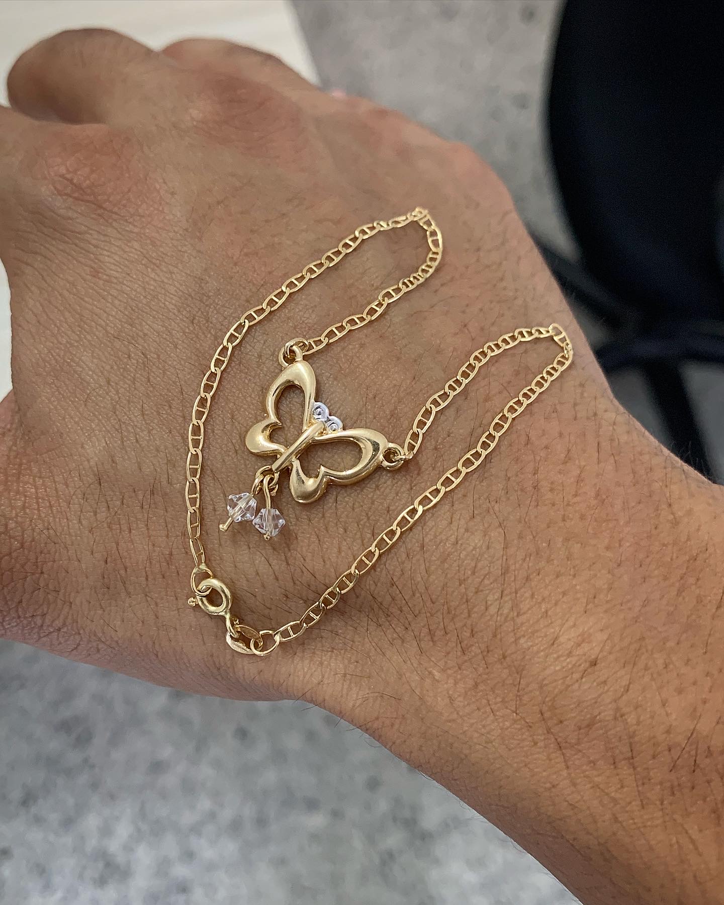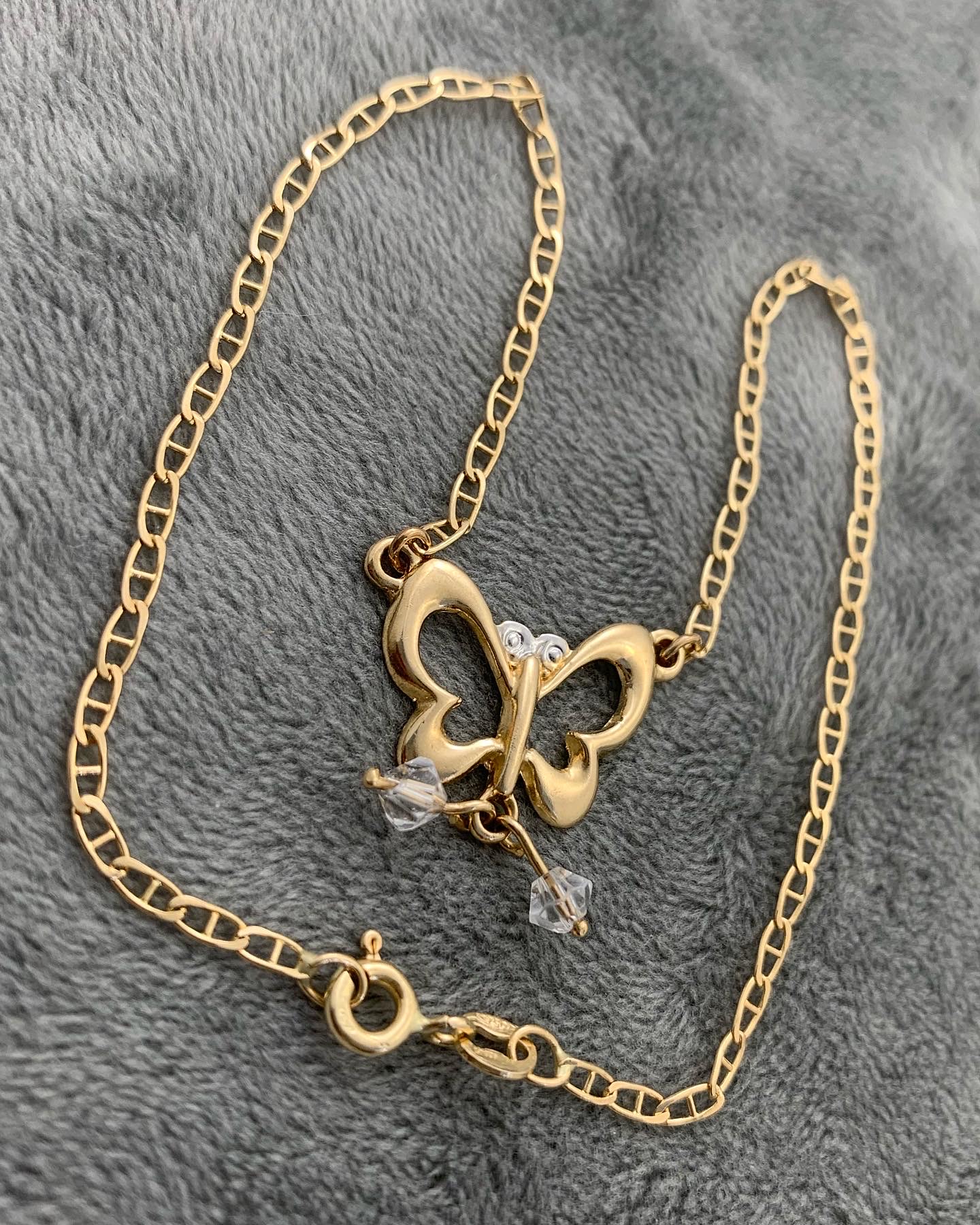 Hermoso Tobillera con Herraje de Mariposa Oro 18K
