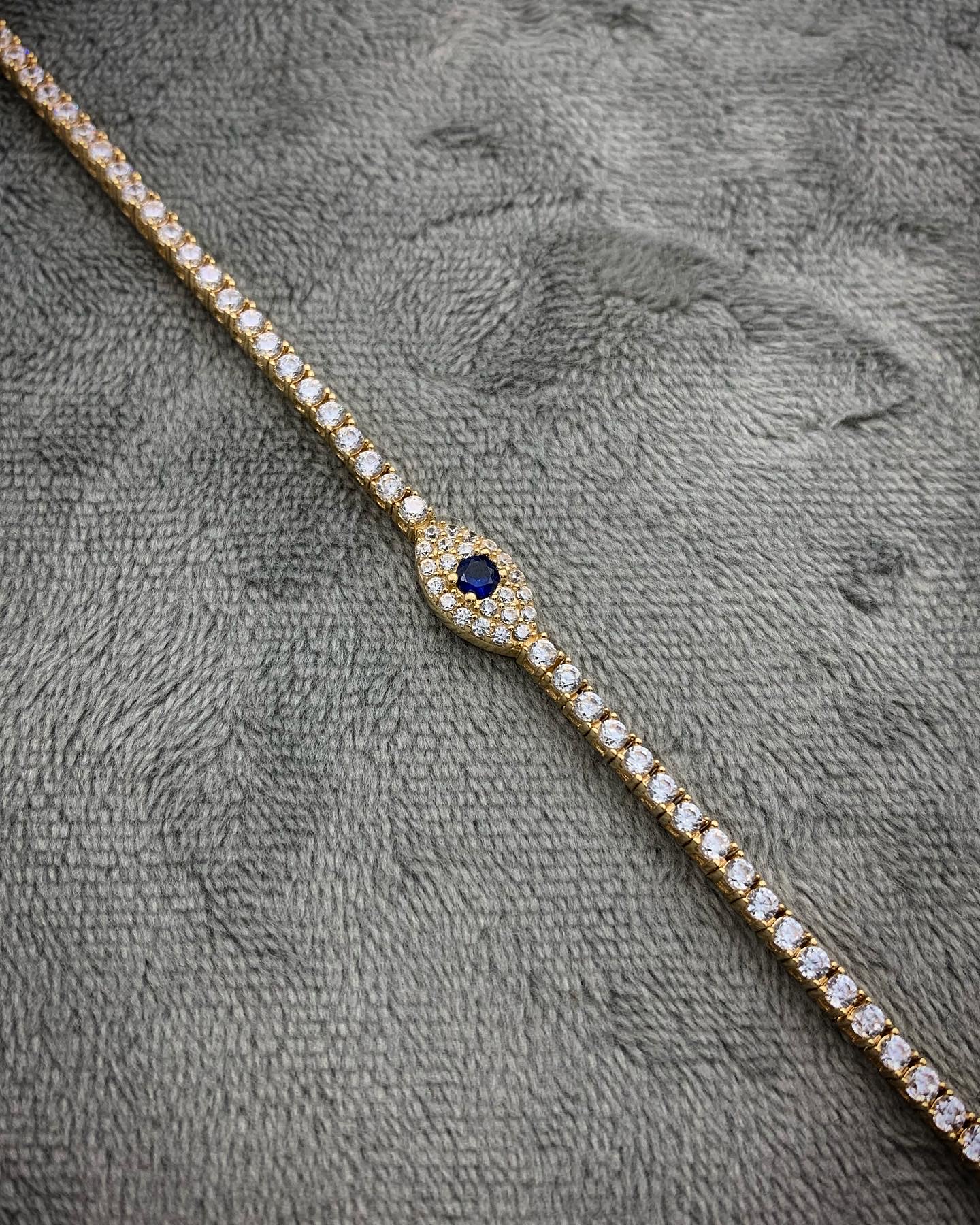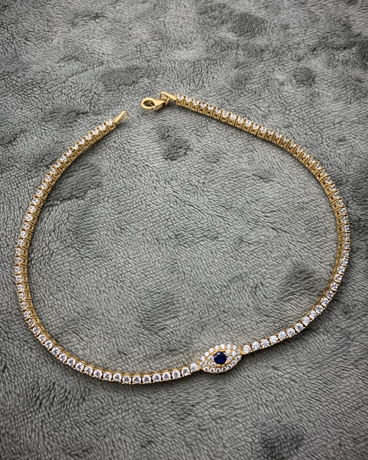 Tobillera Tennis Con Ojo Turco Y Swarovski Blanco Y Azul