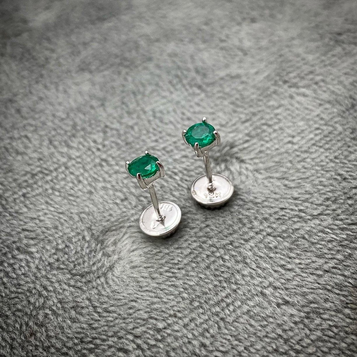 Inicio / Joyeria con Piedras Preciosas / Topos piedras naturales / Topos Con Esmeraldas (0.35 Qts) En Oro Blanco 18K 0.6 Gr
