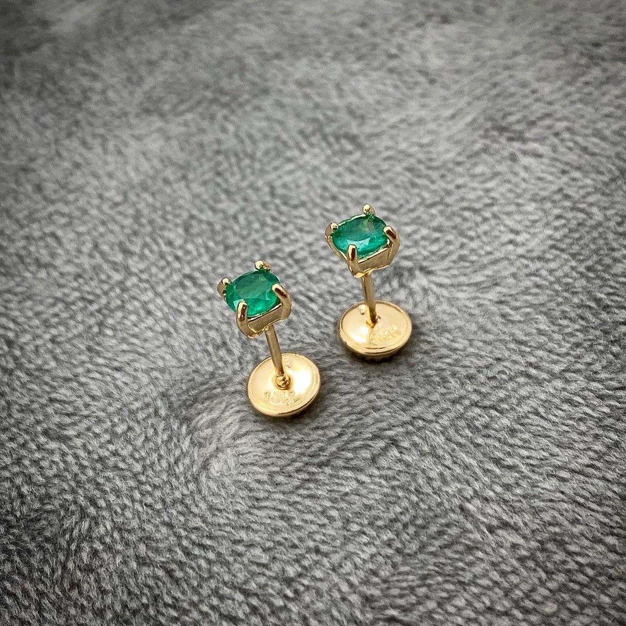 Inicio / Joyeria con Piedras Preciosas / Topos piedras naturales / Topos Con Esmeraldas (0.38 Qts) En Oro Amarillo 18K 0.9 Gr