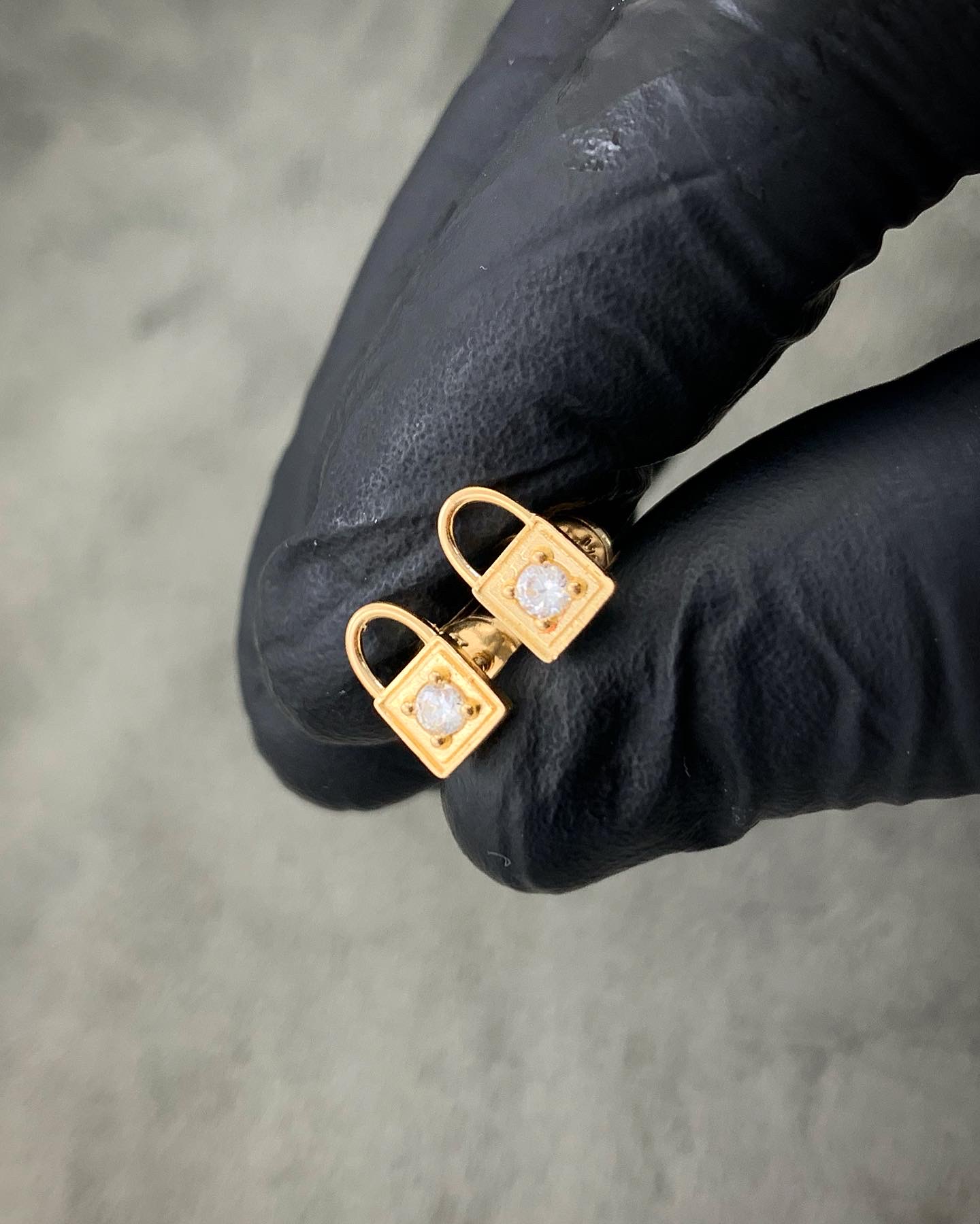Topos de Candado con Swarovskis blancos en Oro Amarillo 18K 1.15gr