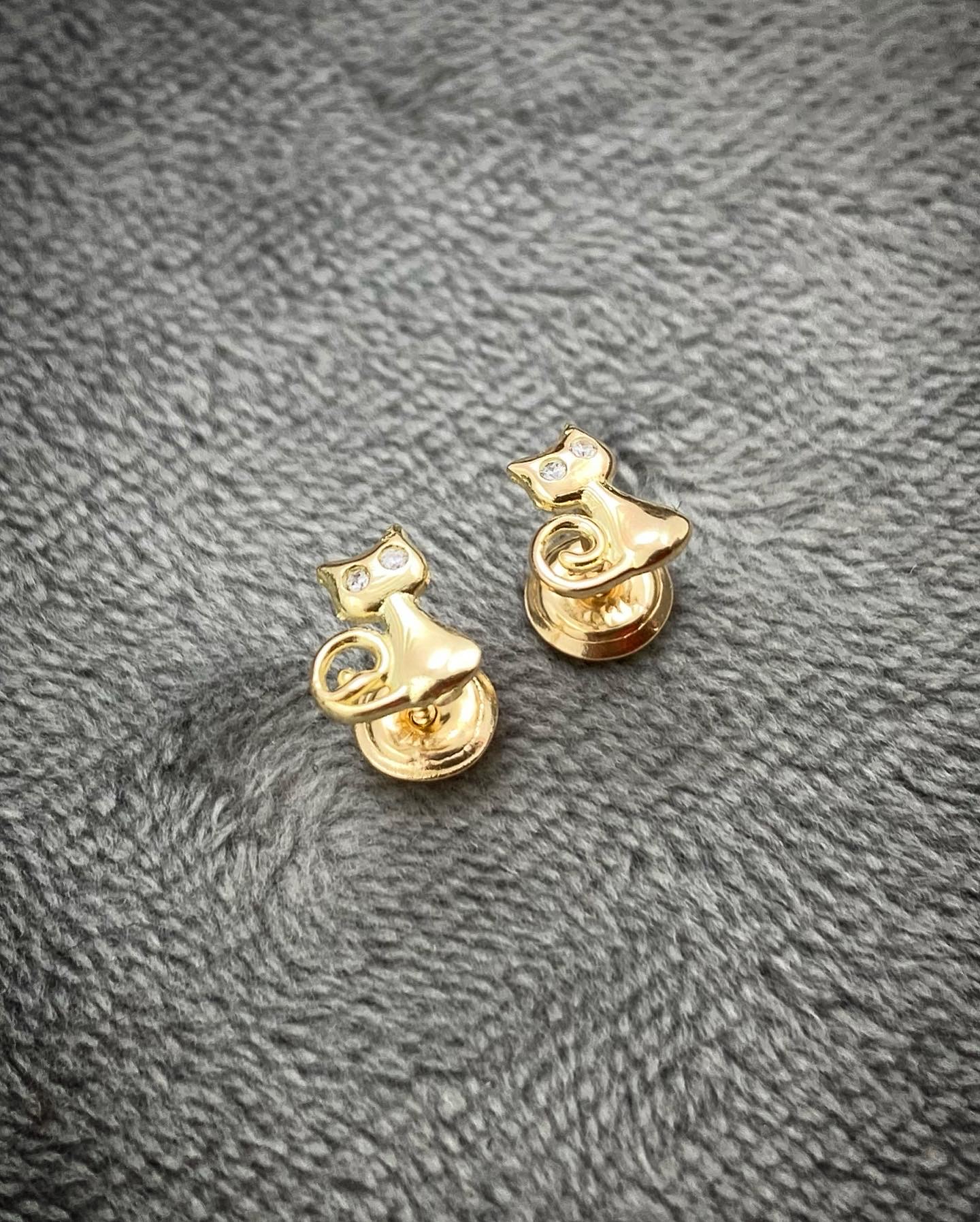 Inicio / Topos / Topos figuras / Topos De Gato Con Swarovski Blanco Oro Amarillo 18k 1.0gr 7.3mm
