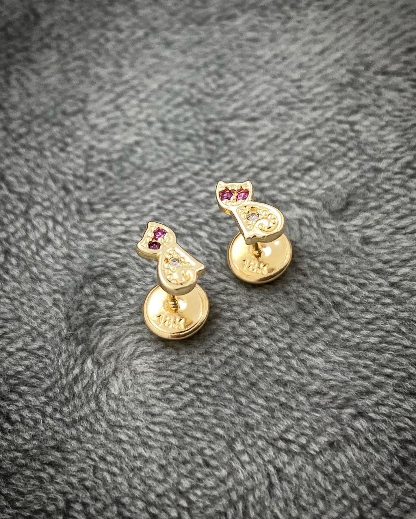 Inicio / Topos / Topos de Animales / Topos De Gato Con Swarovski Fucsia Oro Amarillo 18k 0.85gr 5.7mm