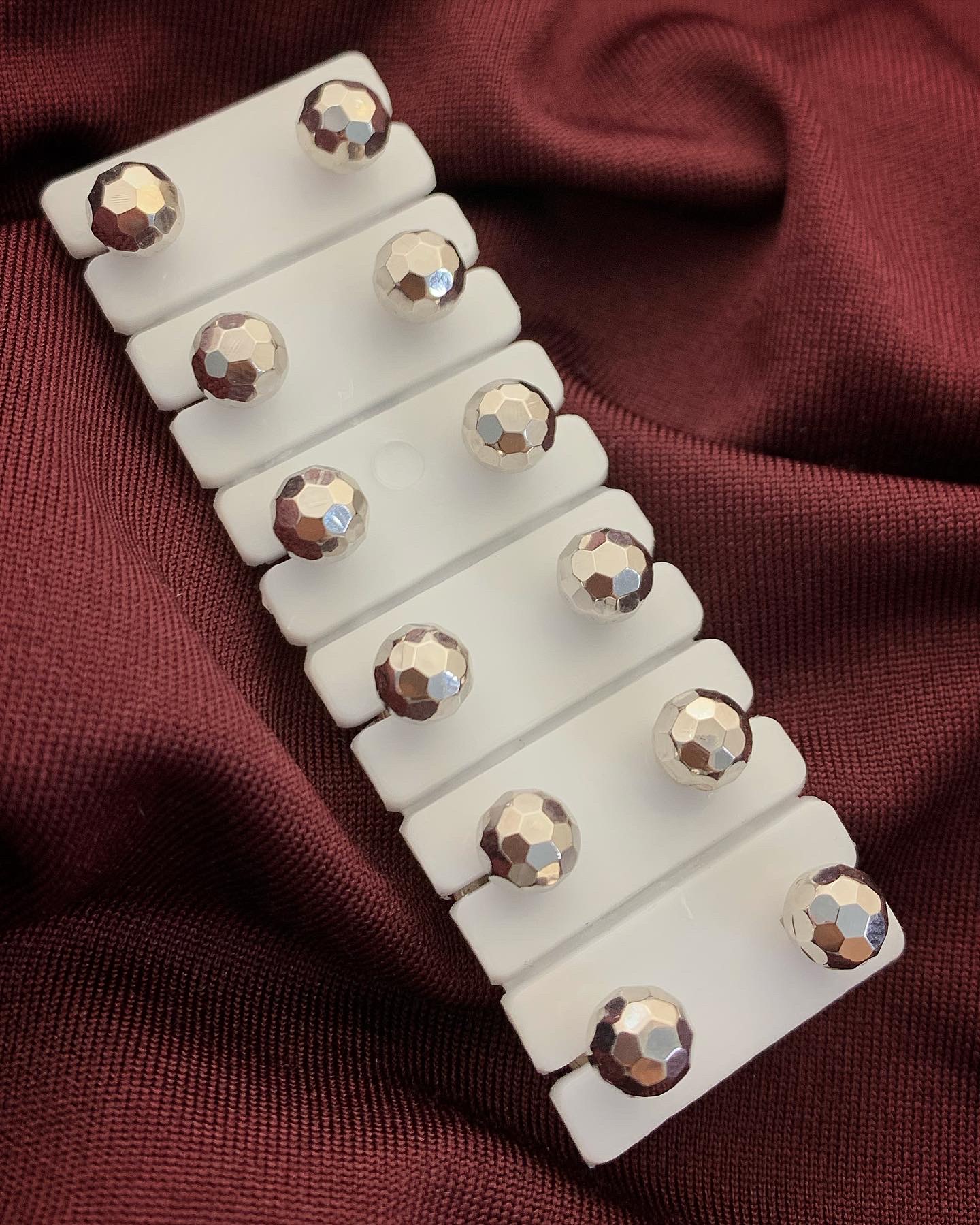 Topos De Media Bola Diamantado Discoteca #7mm Oro Blanco 18K 0.9 gr